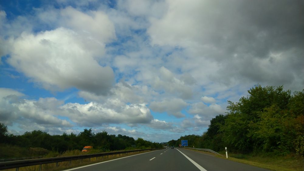Deshalb sind wir am 12. August früh um vier ins alte RüBä-Mobil ohne Klimaanlage gestiegen und haben uns auf den Weg nach Berlin gemacht, um dort festzustellen, dass wir einen der beiden Termine verbaselt hatten. 13 und 10 kann man halt auch mal verwechseln. Gab zum Glück nur einen halben Herzinfarkt, denn wir hatten ja vorsichtshalber noch Termin Nummer zwei behalten. Der war zwar erst am Freitag, aber so hatten wir wenigstens einen Tag mehr Zeit, Kram für den Verkauf des alten Autos und für den Urlaub zusammenzusuchen. Außerdem hatten wir ein Zwischenerfolgserlebnis, denn wir haben das Nummernschild vorab raussuchen und prägen lassen können – wenigstens was. Dann kam er, der Tag der ZULASSUNG! Wir waren ungefähr eine Stunde zu früh, aber sicher ist sicher, wenn man nicht noch einen Dritttermin in petto hat. So war es halt ein bisschen dumm mit vielen anderen Menschen rumstehen, nochmal kurzes Zwischenbibbern, weil nur einer rein durfte, aber irgendwann war es endlich so weit und wir hatten die Zulassung. Nun nur noch flux mit dem Auto nach Erfurt und das neue Auto holen, dachten wir – ging auch ganz gut los, aber nur bis zur Vollsperrung der A9 oberhalb von Halle. Minute um Minute verging im Stau, sehr schön warm war es auch, die Nerven lagen immer blanker und irgendwann waren wir endlich von der Autobahn runter, pesten über per Google-Maps gefundene Schleichwege nach Halle und von dort durch Starkregen und Gegenlicht so schnell es ging nach Erfurt. Die Dame im Autohaus war zum Glück noch da, wenn auch leicht knurrig, und dann ging alles ganz schnell: noch ein paar Unterschriften, ich zur Abschiedsfahrt ins alte Auto, Rudi ins neue Auto und ab die Lucy nach Ilmenau, wo das alte RüBä-Mobil für den Käufer abgestellt werden musste. Nun haben wir ein neues Auto mit dem wir durch Thüringen cruisen, aus Spaß und weil die Klimaanlage so schön kühlt 😉