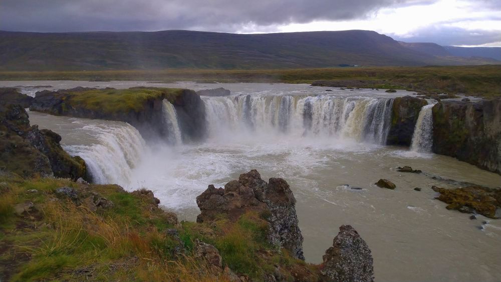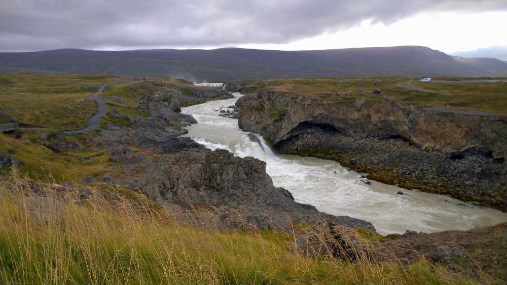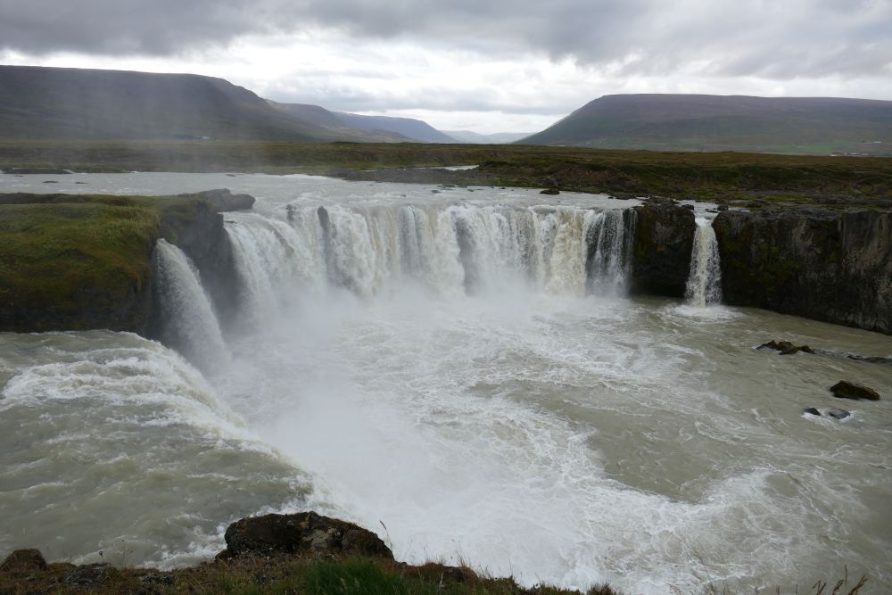 Das war aber noch längst nicht alles, denn nachdem wir wieselflink Akureyri durchfahren haben (weiß irgendwer, wo man die Maut für den Tunnel dahin bezahlen muss?), geht es noch zum Goðafoss, den wir dieses Jahr so ziemlich allein für uns haben. Diesmal nehmen wir uns auch die Zeit und gehen auf beiden Seiten an den Fluss und werden mit neuen, sehr schönen Blicken belohnt.
