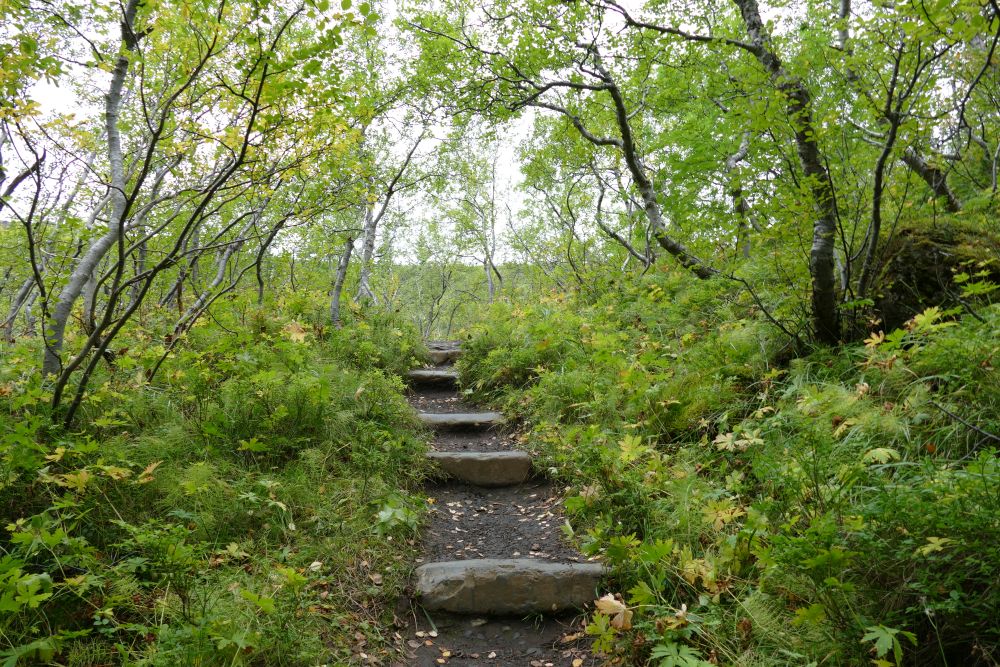 Deshalb schnell alles ins Auto geworfen und ab mit uns Richtung Husavik. Bevor wir dort ankommen, machen wir eine Lauf- und Guckpause in Asbyrgi, der berühmten Hufeisenschlucht.