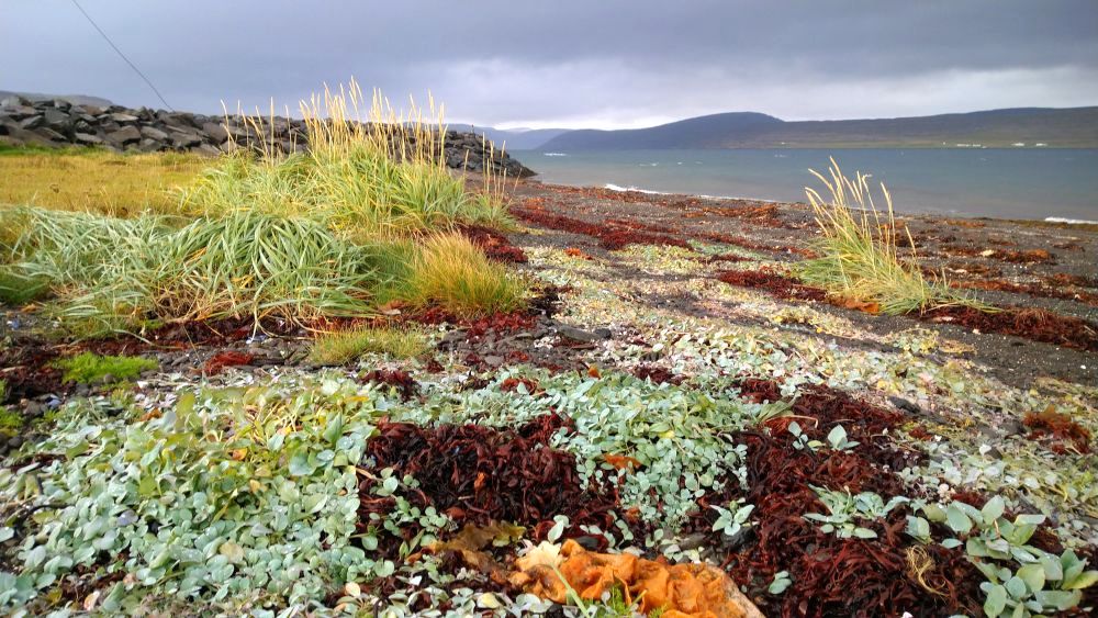 Kurz nach neun geht’s los, erstmal die Steingrímsfjarðarheiði überqueren. Wir warten die ganze Zeit auf den angekündigten Starkwind, aber es geht und so kommen wir wohlbehalten im nächsten Fjord an, wo wir bei der ersten Kurzpause den wohl buntesten Strand der Westfjorde entdecken. Einfach nur wunderschön.