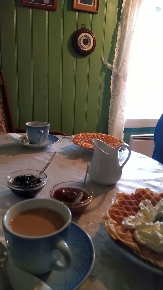 Auf ungefähr der Hälfte der Strecke halten wir zu Waffeln und Kaffee in Litlibaer (auf Empfehlung von Burkhard und Simone :)). Das Häuschen selbst ist auch sehr hübsch und die vielen alten Fotos und Alltagsgegenstände zeugen von früheren Zeiten in dieser Gegend, wo das Leben wohl eher kein Zuckerschlecken war. Ist es glaube ich auch heute noch nicht wirklich, außer man hat gerade Sabbatical und ganz viel Zeit 😉