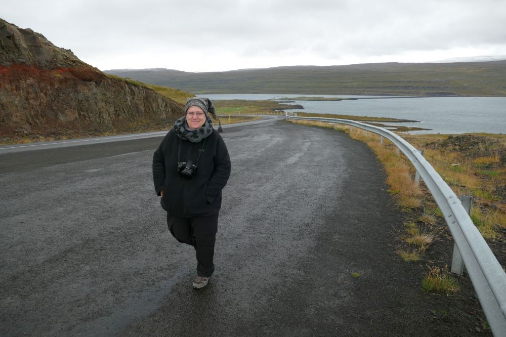 Und weiter geht es. Die Berge werden immer höher und haben nun auch schon ein Schneekäppchen auf. Wir halten immer mal wieder, um uns hohe Wellen oder tiefe Blicke in den nächsten Fjord zu genehmigen und kommen dann irgendwann auch nach Isarfjördur. Hier machen wir eine kurze Stadtrundfahrt, die aber nicht so wirklich lohnenswert ist, denn der Ort ist nun mal einfach nicht hübsch. Hatten wir vor sieben Jahren schon festgestellt und hat sich heute nochmal bestätigt 😉